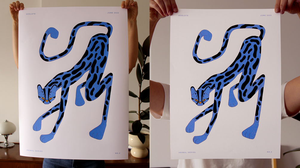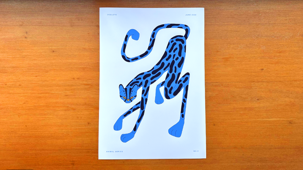 Ocelote - BlueManu Correa SotoIt’s a 200gr matt finish paper.2 sizes!11.7 x 16.5 inches (30 x 42cm) and 19.7 x 27.5 inches (50 x 70cm)$4040usdOcelote - Blue 5 left11.7 x 16.5 inches (30 x 42cm)$7070usdOcelote - Blue 5 left19.7 x 27.5 inches (50 x 70cm)240usdQuantityI want this!Add to wishlist New wishlistShareShare on XShare on Facebook Copy linkCopy product URL